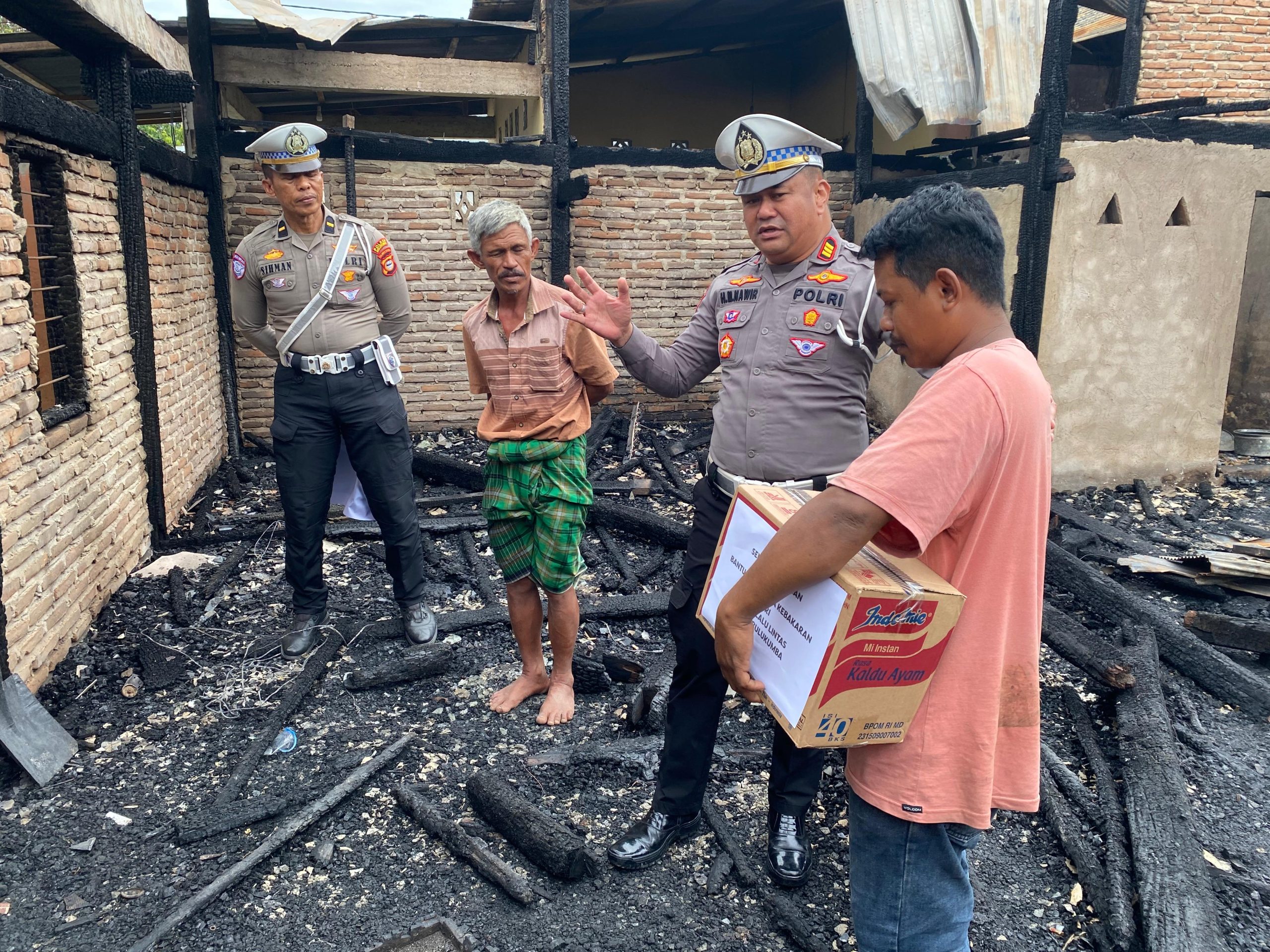 Selain menyalurkan bantuan, Kasat Lantas juga menyampaikan ucapan duka cita serta memberikan dukungan moril kepada korban kebakaran agar tetap tabah dan ikhlas dalam menghadapi cobaan yang terjadi.