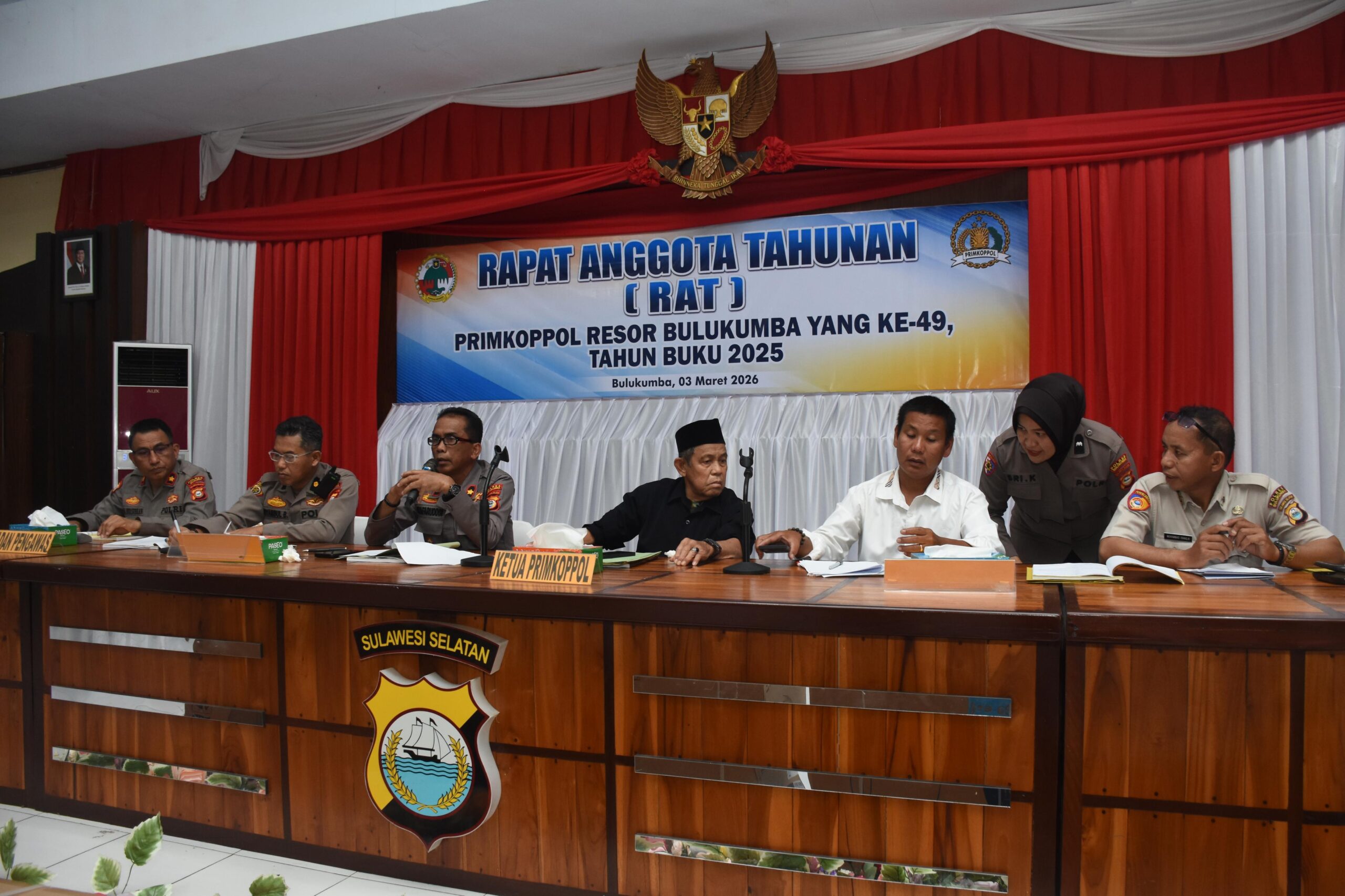 Kegiatan berlangsung di Aula Parama Satwika Polres Bulukumba, Selasa sore, 3 Maret 2026. RAT dibuka langsung oleh Kapolres Bulukumba AKBP Restu Wijayanto, S.I.K selaku Pembina Primkoppol Polres Bulukumba.